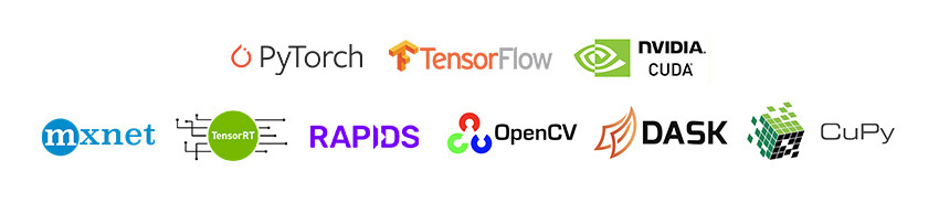 系统预加载11个常见的深度学习及机器学习框架,包含NVIDIA NGC优化后之多个AI开发框架。系统也提供框架测试页面,可方便快速验证开发环境。