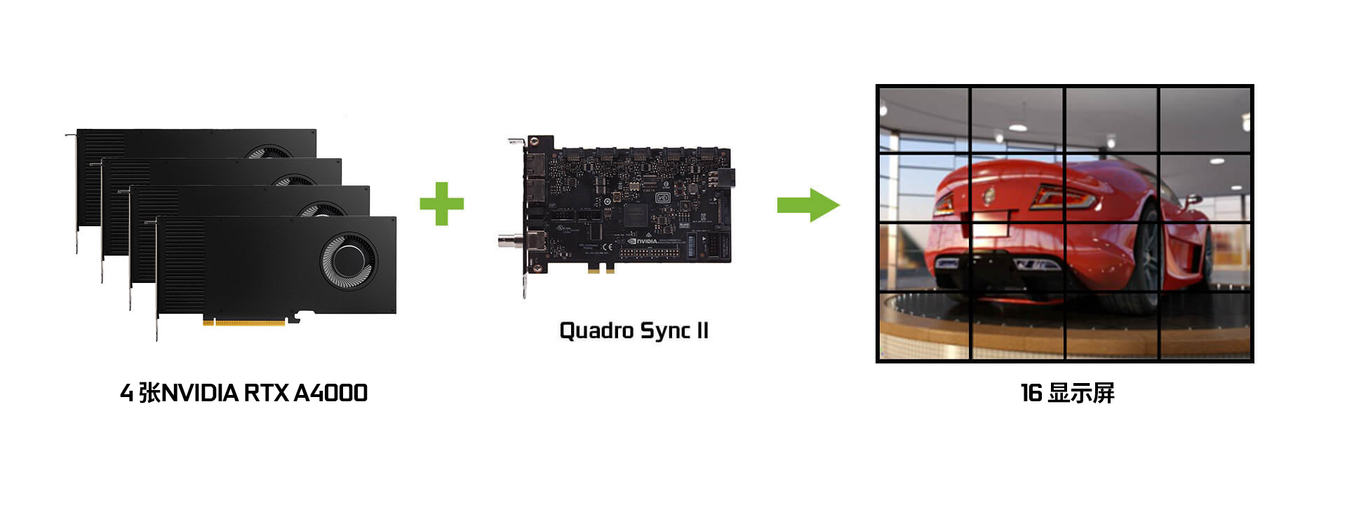 在单一系统的 8 个 GPU 中同步最多 32 个显示器的显示和画面输出 (透过两张 Sync II 适配卡连接),减少建立高阶影像可视化环境所需的机器数量。