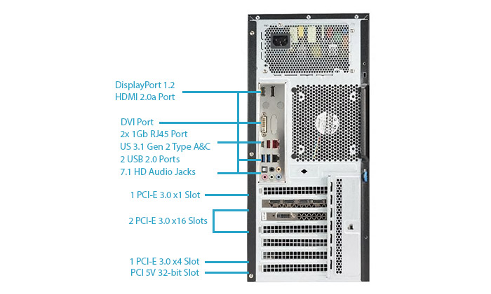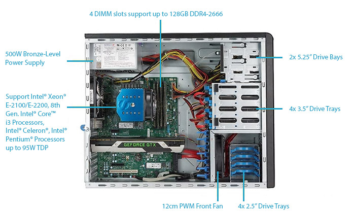 | SATA | SATA3 (6Gbps) via Intel C246 controller, RAID 0, 1, 5, 10 support |