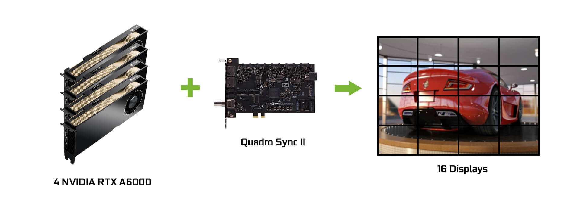 Synchronize the display and image output of up to 32 displays from 8 GPUs (connected through two Sync II boards) in a single system, reducing the number of machines needed to create an advanced video visualization environment.