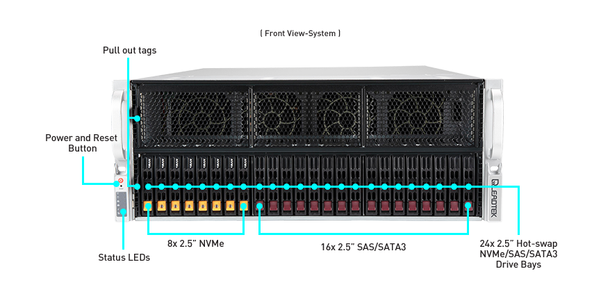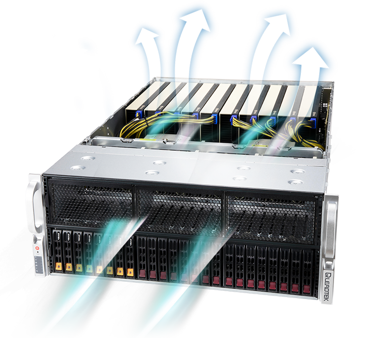 WinFast GS4840 features a powerful GPU architecture that supports up to 10 double-width GPUs in a 4U server, including NVIDIA® A40/A30/A10/A6000, Tesla V100s/V100/T4, Quadro RTX8000/RTX6000®, plus features NVIDIA NVLink® Bridge to enable scaling of performance in order to meet the demands of AI, high-performance computing, and 3D rendering applications.