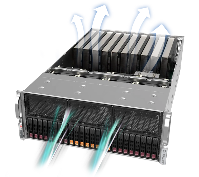 WinFast GS4855 ST features a powerful GPU architecture that supports up to 10 double-width GPUs in a 4U server, including NVIDIA® H100/L40/L40S/A100/A6000/6000 Ada, to enable scaling of performance in order to meet the demands of AI, high-performance computing, and 3D rendering applications.