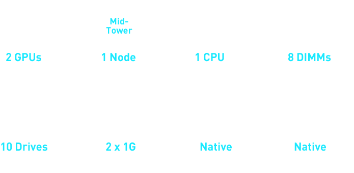 | SATA | 6 SATA3 (6Gbps) ports from Intel® C422 |