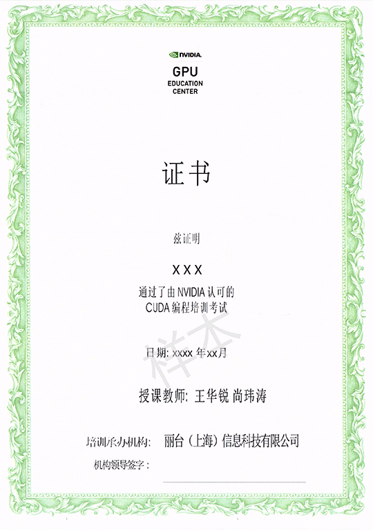 培训考试合格者将获得NVIDIA颁发的深度学习、CUDA开发等认证证书。