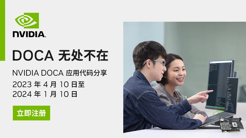 通过 NVIDIA DOCA™ 中国开发者社区,您将了解到 NVIDIA BlueField® DPU 和 NVIDIA DOCA™ 软件开发套件相关的软件开发框架、软件包、文档、参考应用、技术论坛和开发者博客,方便开发者通过 NVIDIA DOCA™ 软件开发套件使用行业标准 API 基于 NVIDIA BlueField® DPU 快速创建高性能、软件定义、云原生、 DPU 加速的应用程序和服务,缩短开发周期以快速推向市场,满足现代数据中心日益增长的性能和安全需求。