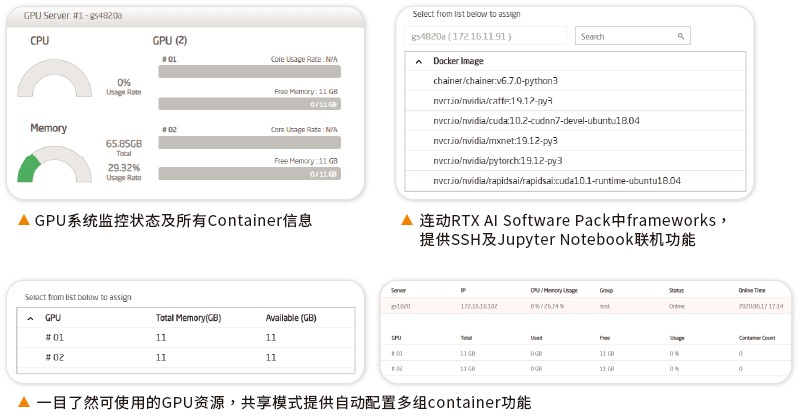 同时满足多种情境需求,一张高阶GPU可分给多人进行教学,也可以提供单一团队的研发项目。