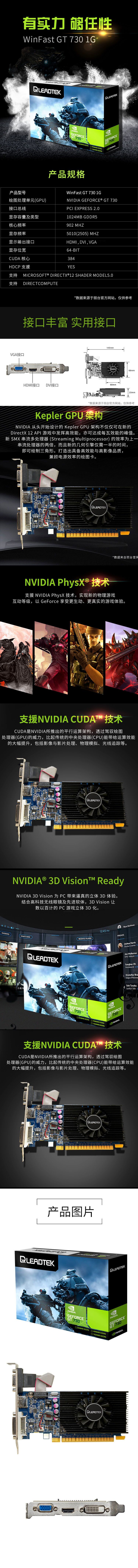 | 包装内容 | WinFast GT 730 显卡 |