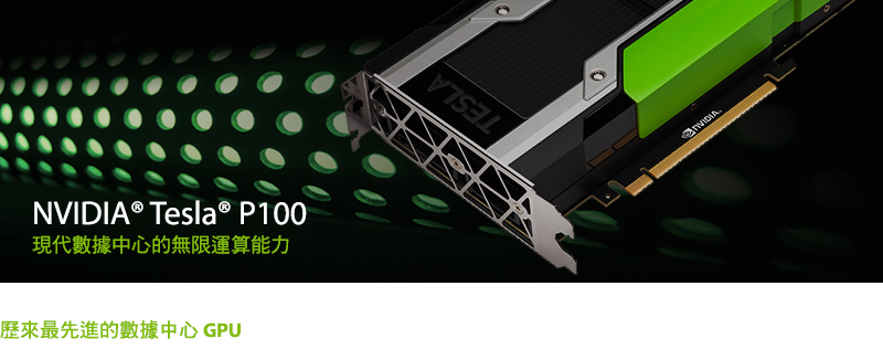 NVIDIA® Tesla® P100 是歷來最先進的 GPU 加速器,專為數據中心所設計。採用全新的 NVIDIA Pascal™ GPU 架構以提供地表最快的運算節點,效能更勝數百個較緩慢的設備運算節點。數量更少的飆速節點能促成更高的效能,讓數據中心不僅可大幅增加輸送量,還可節省成本。