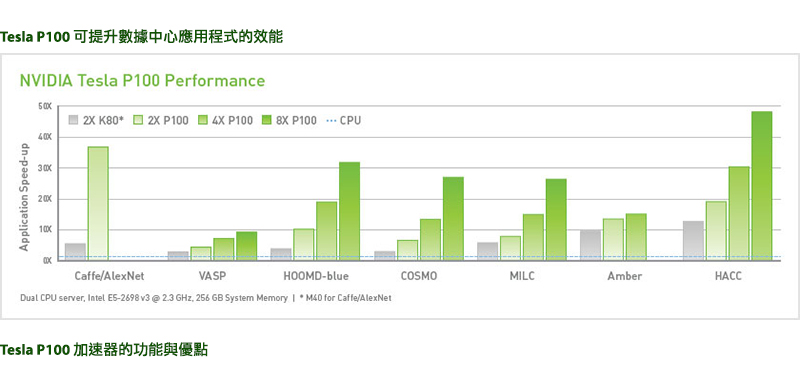 | NVIDIA TESLA P100 加速器的效能規格 | |