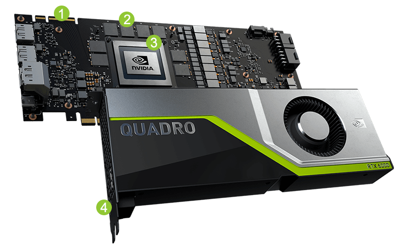 配備業界率先採用的 24 GB 超高速 GDDR6 記憶體,可儲存複雜的設計,龐大的建築資料集,8K 電影內容等。
