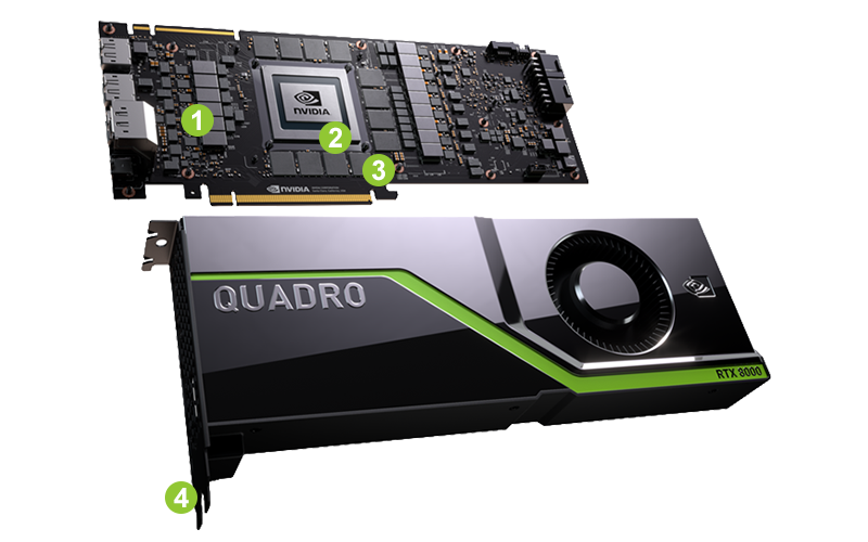 Quadro RTX 8000具有72個用於即時光線追踪的RT核心和用於AI增強工作流程的576個Tensor核心,可實現超過130 TFLOPS的深度學習效能。 Quadro RTX 8000採用48 GB GDDR6記憶體,可通過 NVIDIA NVLink 技術擴展至96 GB,可適用於大容量記憶體需求的高負載工作,例如創造最複雜的模型,建構大量架構數據集,可視化大量數據科學工作負載,使用即時8K電影內容,加快高解析度之最終渲染速度。 VirtualLink® 提供與下一代高分辨率VR 頭戴式顯示器的連接,使您可以在最引人注目的虛擬環境中查看您的工作。