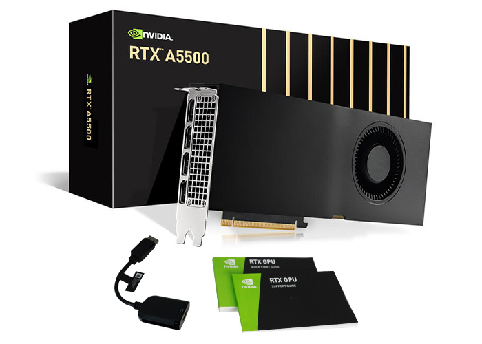 NVIDIA RTX A5500 專為要求嚴苛的工作負載而設計,讓專業人士能夠同時運行多個應用程式,使用互動順暢且不會影響效能。NVIDIA RTX A5500 提供構建高品質、身歷其境的內容和隨時隨地協作所需的穩定性、可靠度、效能和功能。NVIDIA RTX A5500 配備 24 GB 的 GPU 記憶體,可通過 NVLink 擴充至 48 GB,可輕鬆處理具有更高解析度和交互性的大型模型、數據集、3D 渲染和複雜場景,幫助用戶從桌面釋放想像力和創造力。