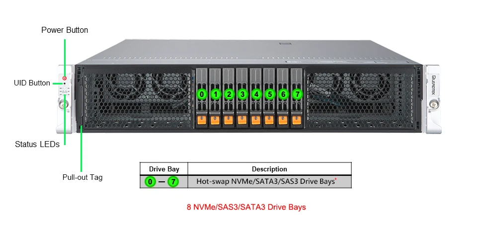 | Hot-swap | 8x 2.5" hot-swap NVMe/SATA/SAS drive bays |