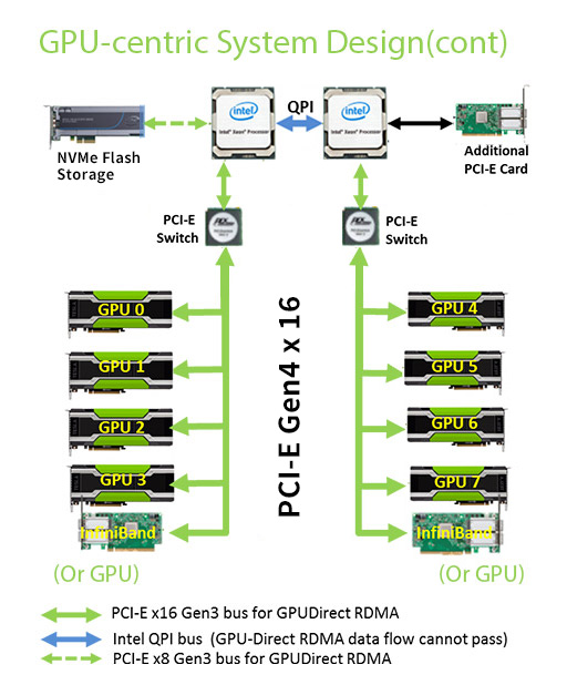 PCIe 5.0 擁有較 PCIe 4.0 雙倍的 I/O 頻寬.您可以使用 128 條 I/O 通道將連接 HPC 集群的網絡頻寬增加一倍,並滿足資料傳輸的巨大需求。關於其他應用程序需求和虛擬化環境,您可以以更高的速度連接到 GPU 加速器、NVMe 磁碟等。