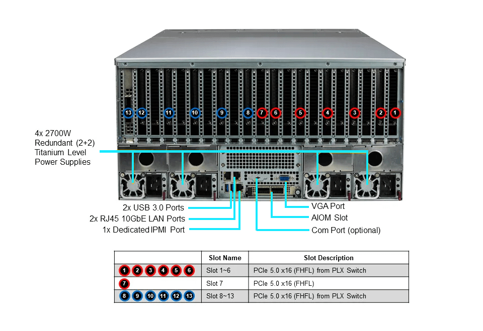 | PCI-Express | 13 PCI-E Gen 5.0 X16 FHFL Slots |