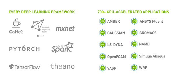 The platform accelerates over 700 HPC applications and every major deep learning framework. It’s available everywhere, from desktops to servers to cloud services, delivering both dramatic performance gains and cost-saving opportunities.