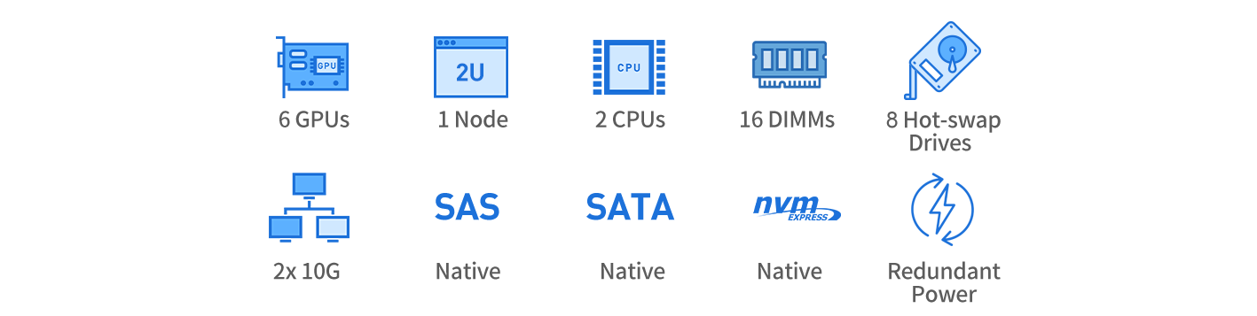 • Support up to 6 pcs of Double-width GPUs