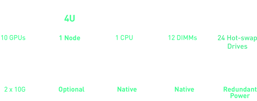 | 24x 2.5" hot-swap NVMe/SATA/SAS drive bays (8x 2.5" NVMe and 2x SATA drives supported by default) |